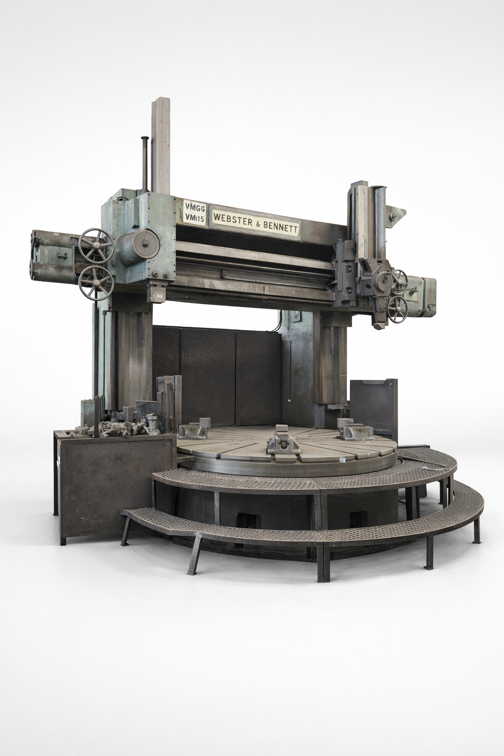 Manually operated Vertical boring & turning machine with twin rams on an elevating bridge
