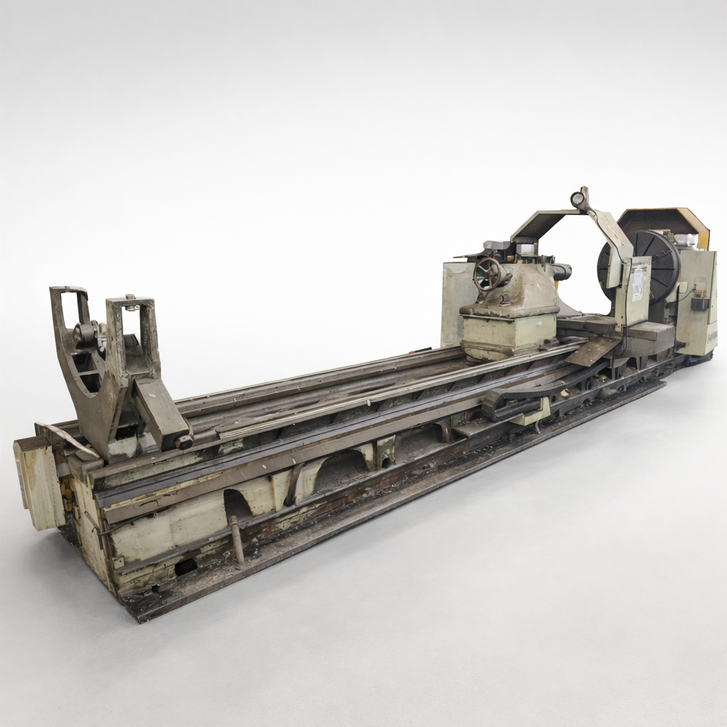 Originally built in the late 1980s, this WMW CNC lathe is a flat-bed lathe that was retrofitted with a Fanuc 0i 2-axis CNC system in 2008. The retrofit also included the installation of linear guides on the bed.