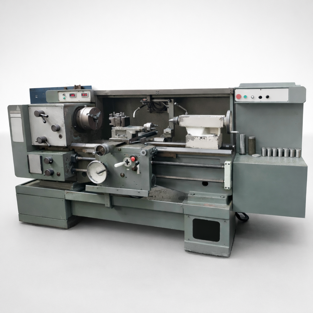 Accessories include a cradle-type steady and covers over the chuck and toolpost. The machine is presently operational and available for inspection under power. Ready for immediate delivery.